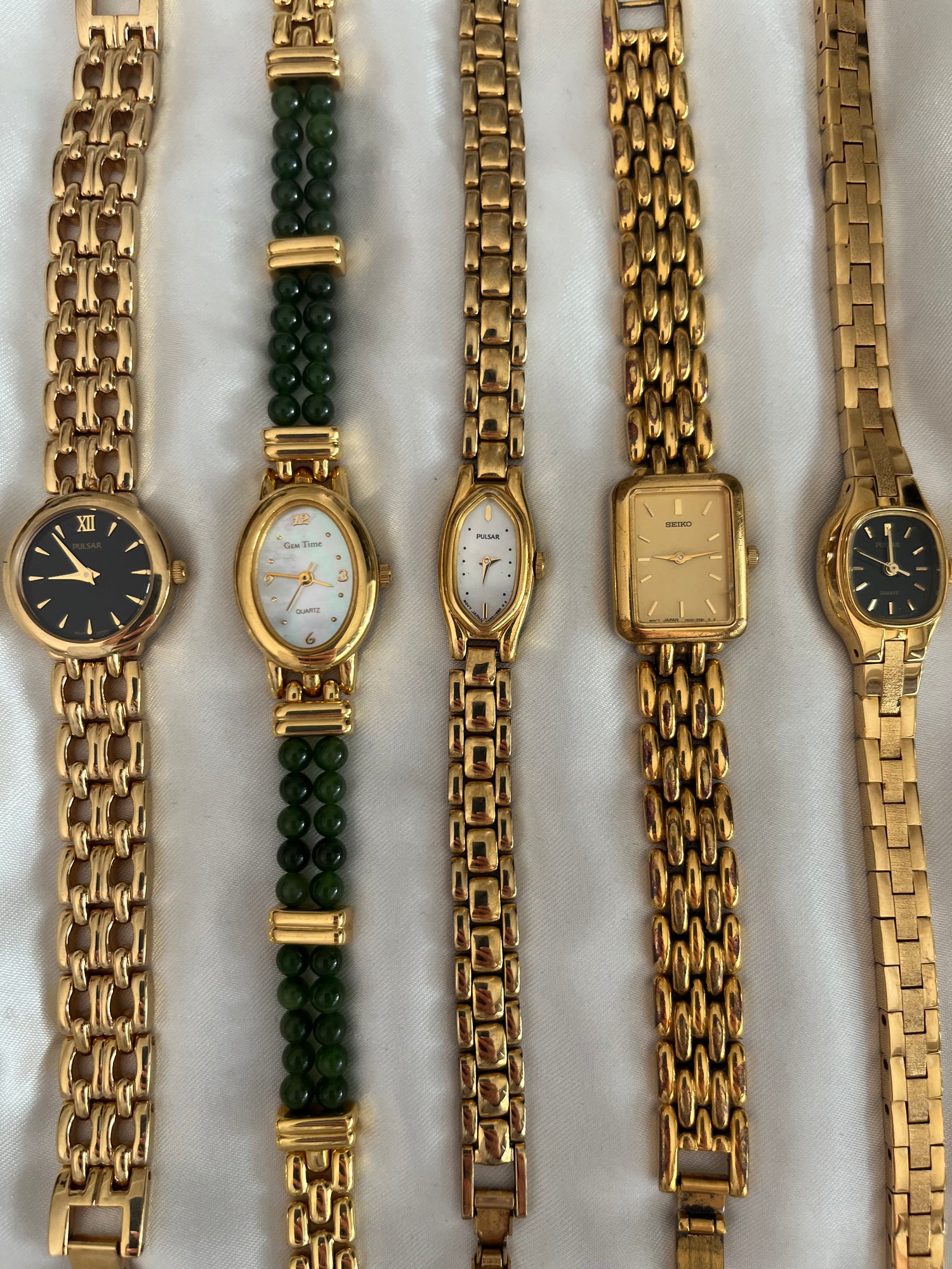 All imperfections and sizing are listed under each individual watch. (Band size is measured from end to end, including the clasp)